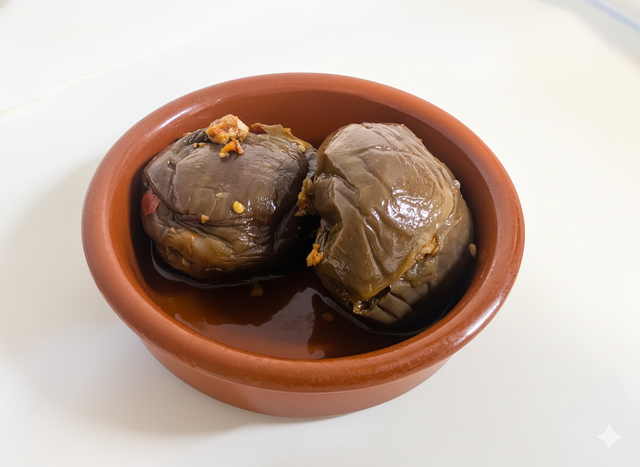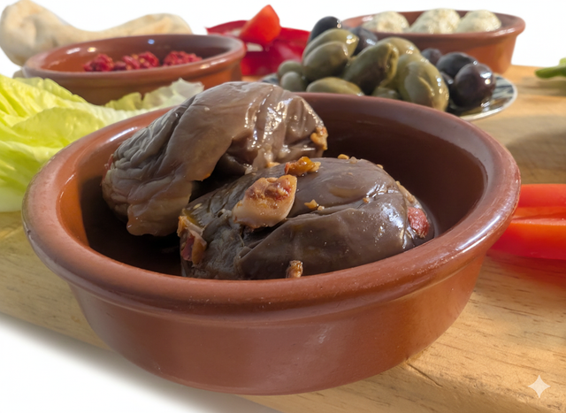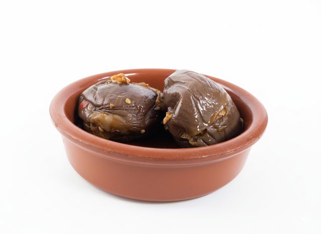 Makdous is a traditional dish of small eggplants that ave been stuffed with a delicious mix of walnuts, garlic and chilli peppers. They are cured in oil and can be found in most Arab homes. They are often served with breakfast, lunch and dinner as a side dish or enjoyed as a snack. Suitable for vegans and vegetarians.